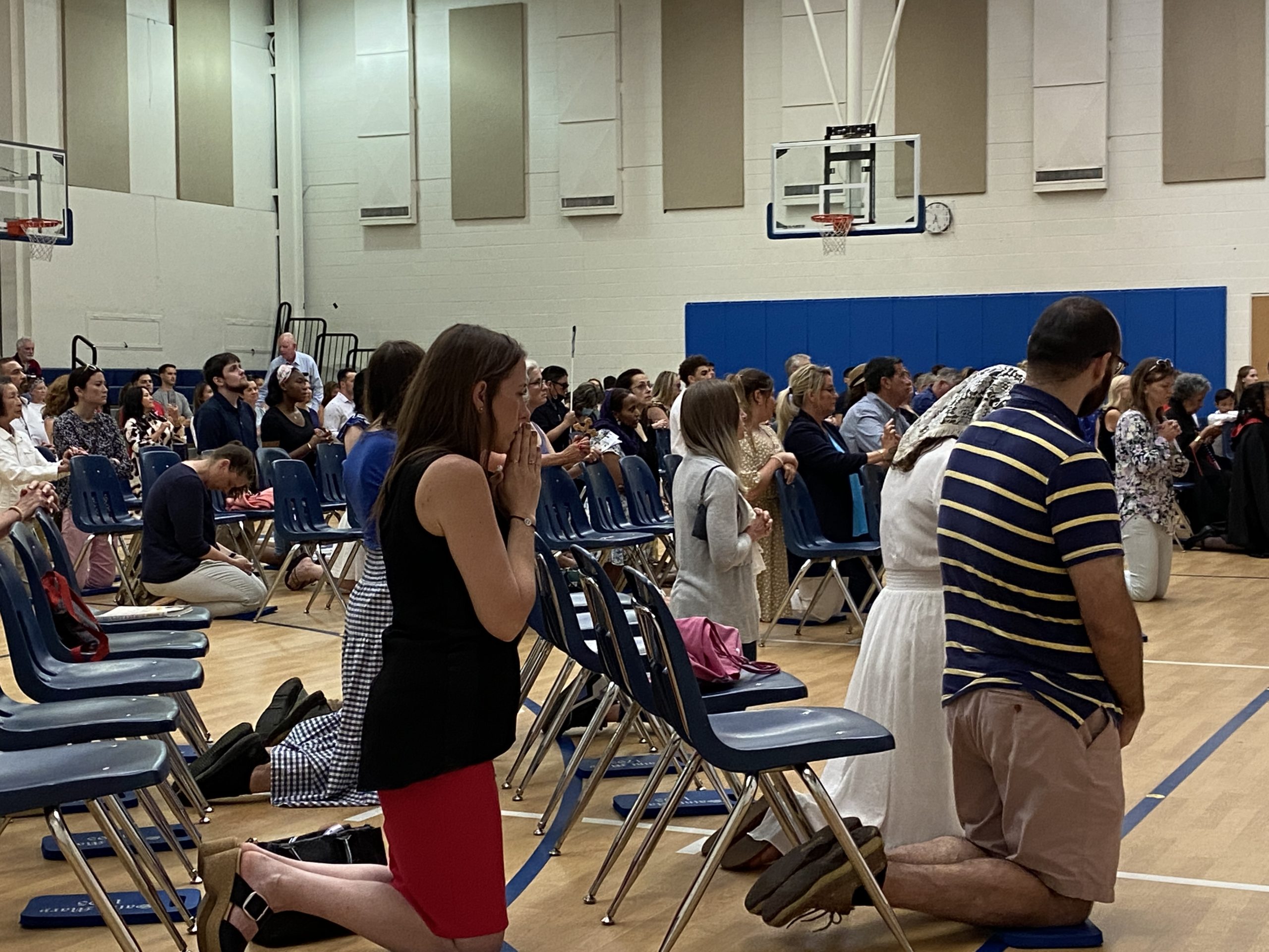 Father Kevin Barnekow carried the monstrance from the Basilica to the Basilica School of Saint Mary Gym, and Father Joseph Townsend carried the monstrance back to the Basilica during this afternoon’s Corpus Christi procession after the 5 p.m. Mass Father Edward Hathaway, the Rector of the Basilica, also was part of the procession and led Benediction. The Knights of Columbus carried the canopy and acted as escorts and helped the lead the way at the front of the procession, along with a bagpiper. Dozens of Basilica parishioners also walked along the route to and from the school. David Elliott, the Basilica’s music director, led the choir and music. Members of the Order of Malta also were part of the procession. Thank you to all who participated in this beautiful public witness to the Real Presence of Christ during this Eucharistic Procession.