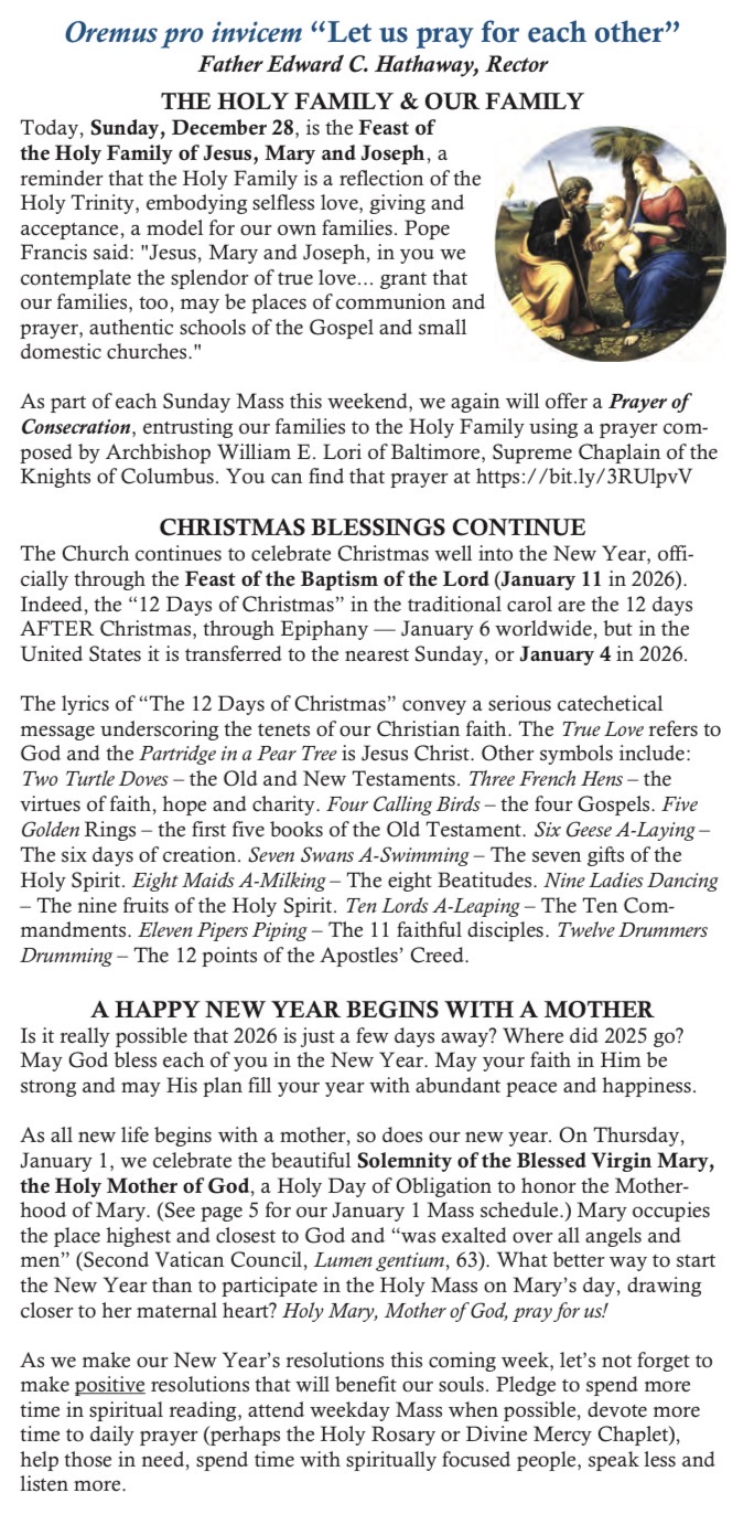 Father Hathaway’s Column — December 28, 2025