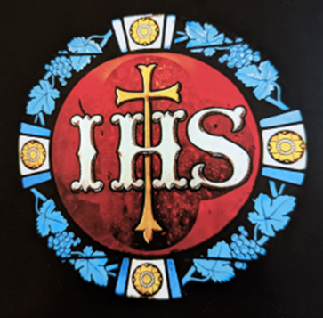 name of Jesus in Greek (Iesous). The Jesuits, who served Saint Mary parish in its early years, used IHS as an emblem. 2. IHS, again. This window is in the confessional. 3. Dove. In the Old Testament, the dove symbolizes peace and purity; in Christianity, it symbolizes the Holy Spirit.